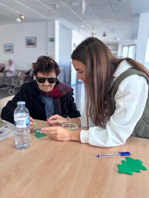 Luego hemos realizado un taller navideño  en el que hemos trabajado la motricidad fina decorando un arbolito de goma Eva.