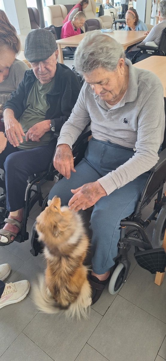 , cuya finalidad en el centro es la interacción de los animales con los mayores para fomentar el bienestar físico, emocional y social, creando actividades dirigidas por los profesionales de esta empresa donde los mayores no solo acarician a los perros sino realizan ejercicios cognitivos, físicos promoviendo así la socialización y la estimulación sensorial. Gracias a este tipo de talleres reducimos el estres y la depresión, mejoramos la atención y aumentamos la vitalidad y el autoestima en todas las personas usuarias.